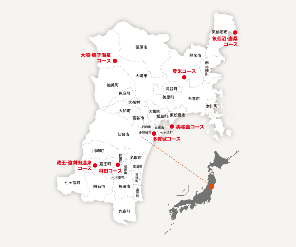 海に浮かぶ大小の島々からなる日本三景・松島をはじめ、豊富な自然に恵まれた宮城県。西部には蔵王・船形、栗駒などの山々、中央部には豊かな田園地帯が広がり、四季折々の自然の美しさを満喫できるのはもちろん、伝統文化にも出会える場所です。2011年の東日本大震災により大きな被害を受けましたが、現在では海沿いや山間の道も震災以前の美しさを取り戻しつつあります。