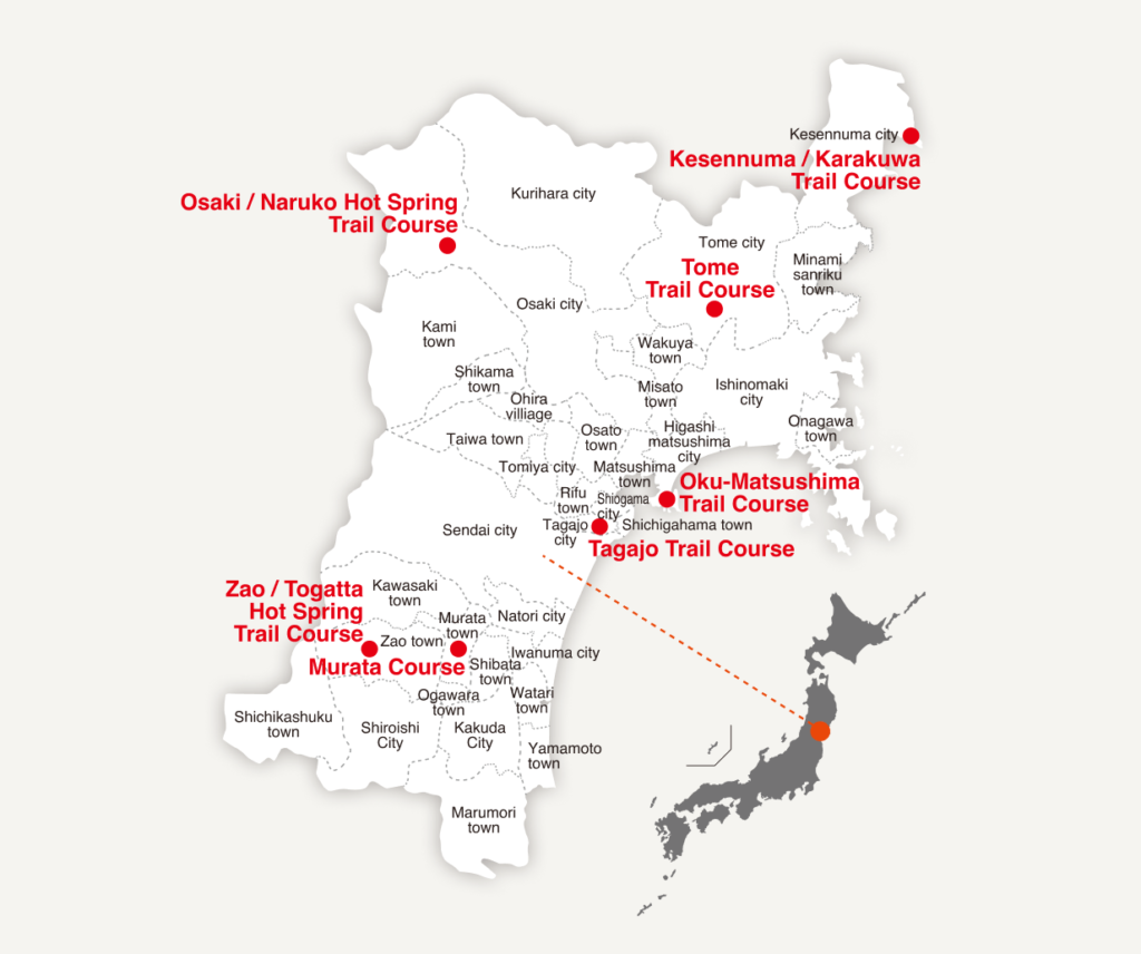 pace.The Miyagi Olle was created as a sister to those in Jeju (Korea), Kyushu and Mongolia. Miyagi Olle is a special hiking course that lets you experience the history, landscape and hot springs, and culture of the area with your five senses.