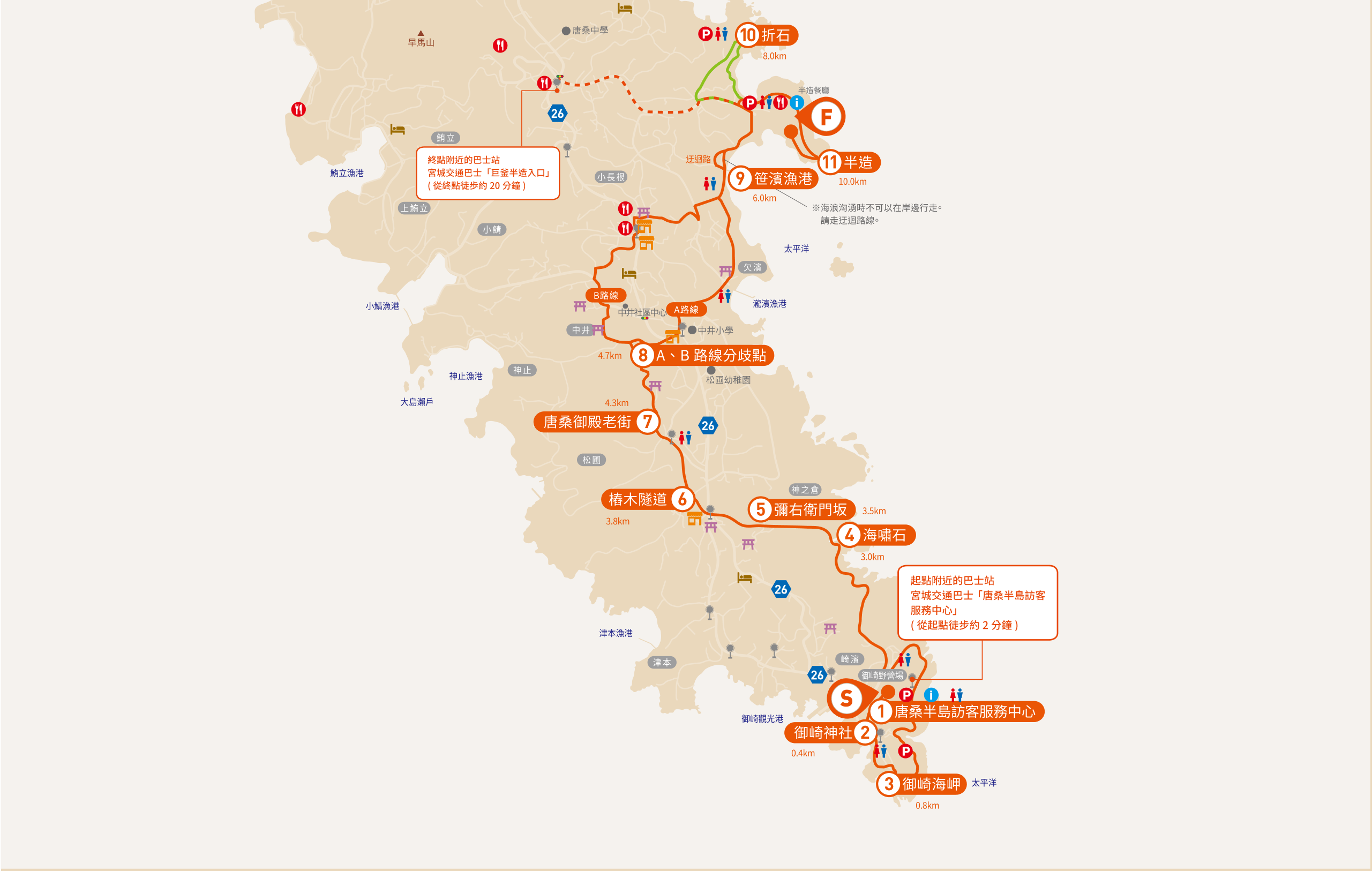 A路線以沿著里亞式海岸散步,欣賞自然風景爲主。 B路線則能沿途經過當地的食堂和商店。